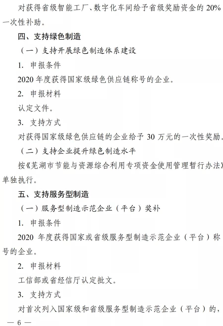蕪湖市2020年促進(jìn)新型工業(yè)化若干政策規(guī)定實(shí)施細(xì)則印發(fā) 作者: 安徽新天源建設(shè)咨詢有限公司 最后修訂: 2021-02-05 08:59:23 摘要: 附件